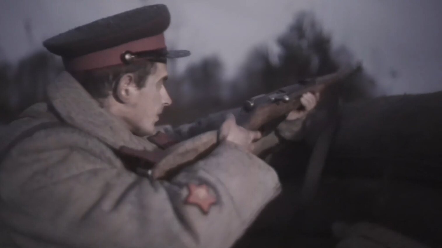 Советский воин с винтовкой Мосина / Кадр из документального фильма